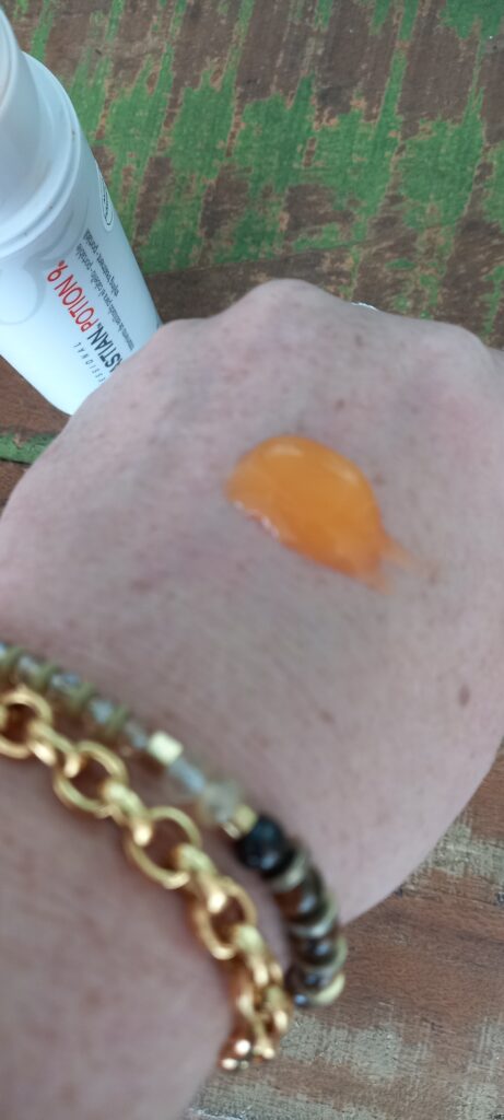 O Potion 9 da Sebastian possuí uma cor alaranjada, porém a marca informa que não altera a cor dos cabelos, principalmente os tons loiros. A sua textura é um Gel-Creme muito fácil de espalhar e se dilui no cabelo.